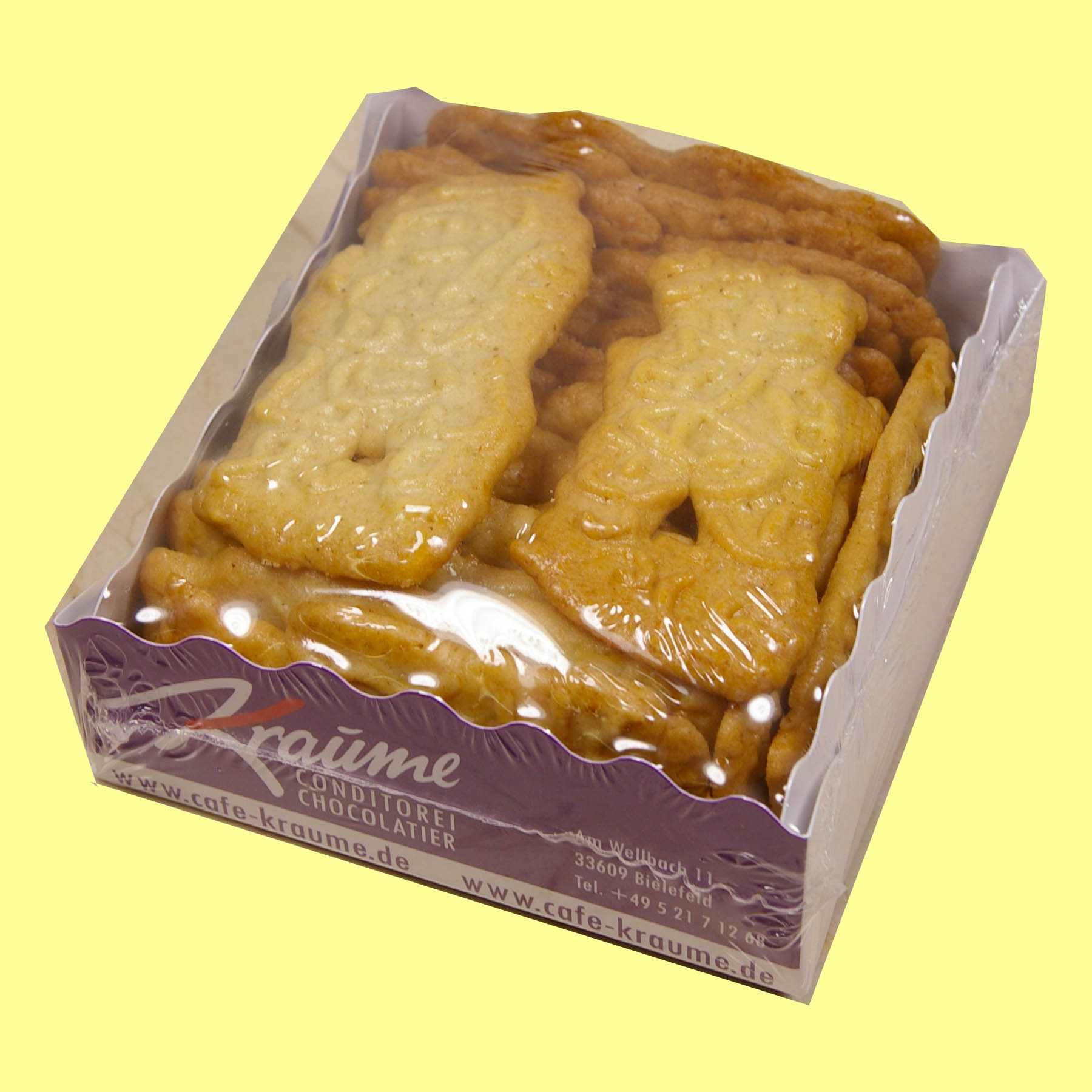 Zutaten: DINKELWEIZENMEHL BUTTER Zucker Vollrohrzucker BUTTERREINFETT HueHNEREI MILCH Meersalz Zucker Zitronenschalen Vanillestangen Zimt Hirschhornsalz (Backtriebmittel (Ammoniumcarbonat)) Tonkabohne Muskatnuss Zitronensaft BITTERMANDEL EXTRAKT Zitronenoel